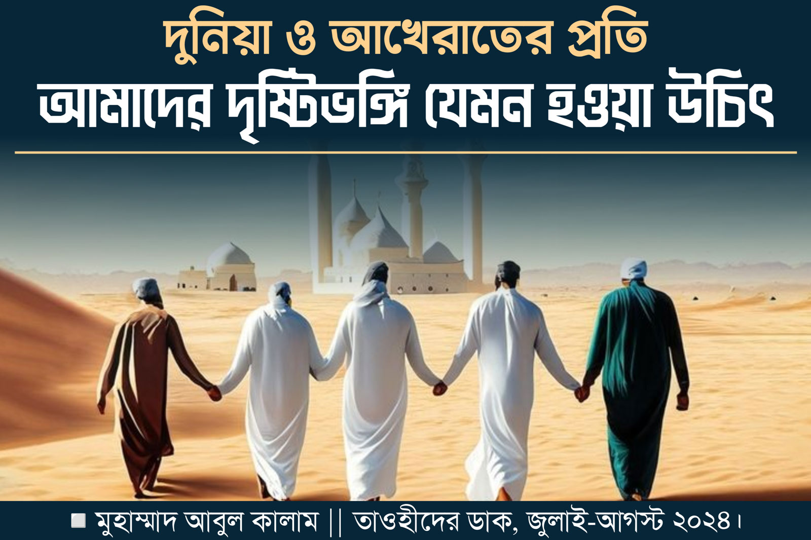 ‘হে লোক সকল! ক্বিয়ামত একটি বিভীষিকাময় দিন। এটা অবশ্যই সংঘটিত হবে, এতে কোন সন্দেহ নেই। সুতরাং সেখানকার (পরকালের) চিরস্থায়ী নে‘মতের পরিবর্তে এখানকার (দুনিয়ার) ক্ষণস্থায়ী ও ধ্বংসশীল আরাম-আয়েশ ও সুখ-সম্ভোগে জড়িয়ে পড়না। দুনিয়ার ক্ষণস্থায়ী সুখ-শান্তি যেন তোমাদেরকে পরকালের চিরস্থায়ী সুখ-শান্তি হ’তে বঞ্চিত না করে। শয়তানের নানামুখী চক্রান্ত হ’তে খুব সর্তক থাকবে। তাঁর প্রতারণার ফাঁদে কখনো পড়োনা। তাঁর মিথ্যা, চটকদার ও চমকপ্রদ কথায় কখনো আল্লাহ এবং তাঁর রাসূল (ছাঃ)-এর সত্য কালামকে পরিত্যাগ করোনা’।[1]